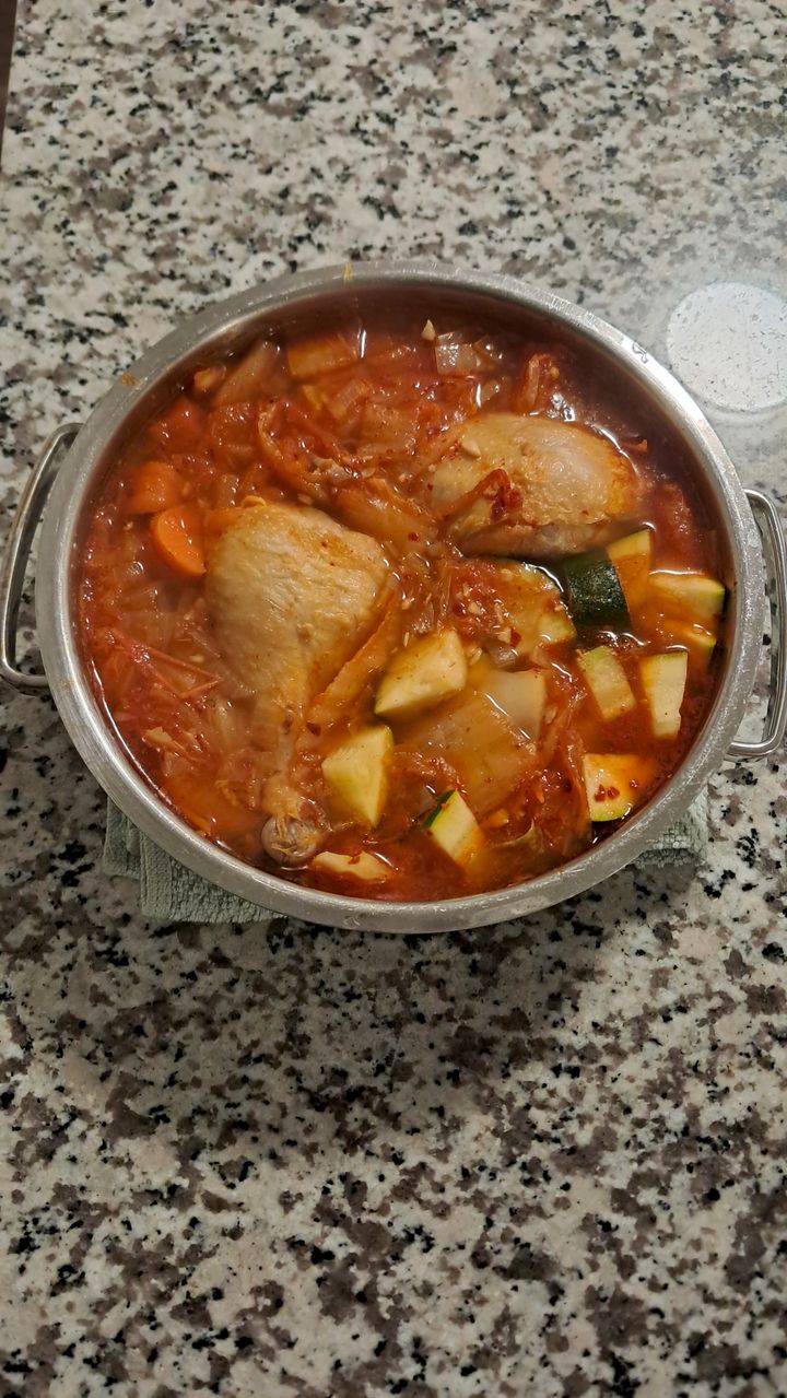 The second one was the leftover stew with roasted drumsticks. I discovered that frying or roasting meat imparts that browned flavor to the protein, called the Maillard reaction. It tasted great, even as leftover. It's even better if you save some of the browned liquid from the roast for the soup.