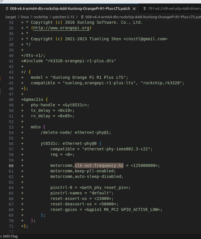 As shown from my previous post on OpenWrt for Orange Pi R1 Plus, kernel patches are how they affect the kernel to their preferences for running OpenWrt, like allowing unsupported devices to run the OS. The Linux kernel source has upstreamed dts for R1 Plus on v6.3 and LTS on v6.4, and now is backported to kernel 5.15 for OpenWrt 23.05 using kernel patches. Patches are created using either diff or git diff.