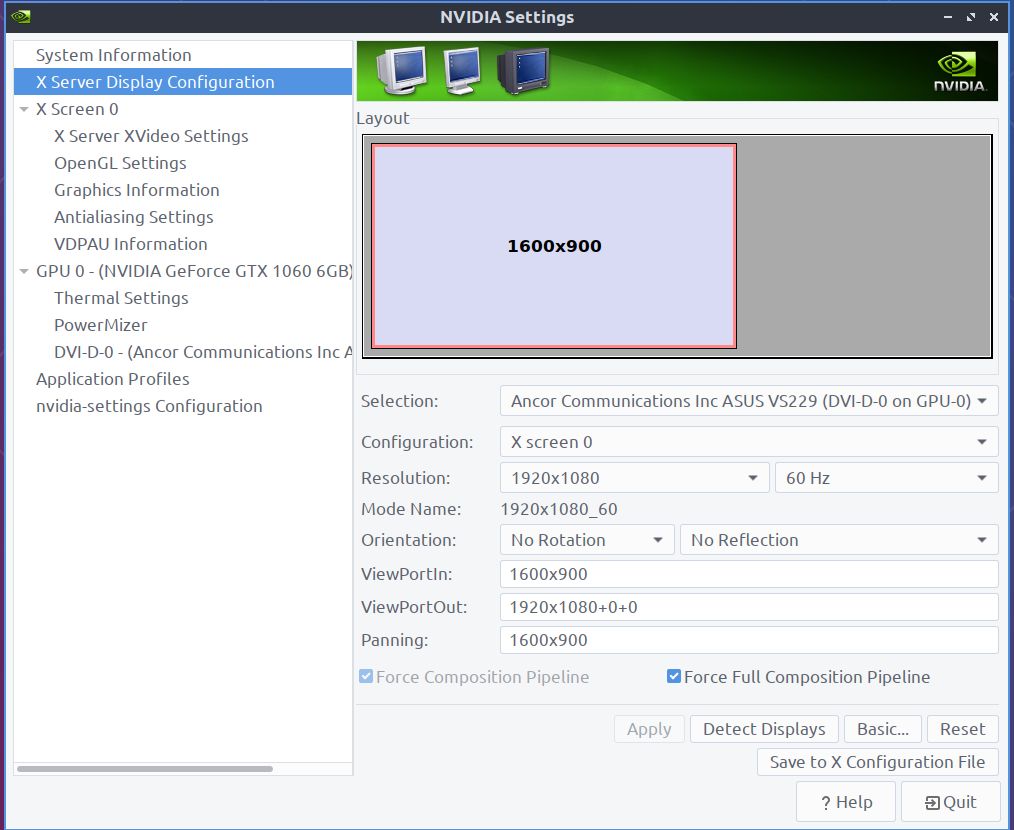I have recently become a permanent resident of the Linux land. I live in Lubuntu town. That's a funny way to say that I use Lubuntu as my daily driver on my laptop. On my laptop, which is an Intel i7 9750H + GTX 1060 combo, it's been kind to me and given me my preferred screen resolution, which was 1600x900 out of the box. That wasn't the case for my desktop, which is an AMD Ryzen 5 1600 + GTX 1060 combo, as it gave me its default resolution of 1920x1080. There's nothing wrong with it, other than the letters appear like tiny dots on screen. When I opened the Monitor Settings, it didn't give me 1600x900, instead there were 1920x0180, 1680x1050, 1600x1200. Nvidia Settings certainly didn't help, it didn't have 1600x900, either. So I had my work cut out for me.
