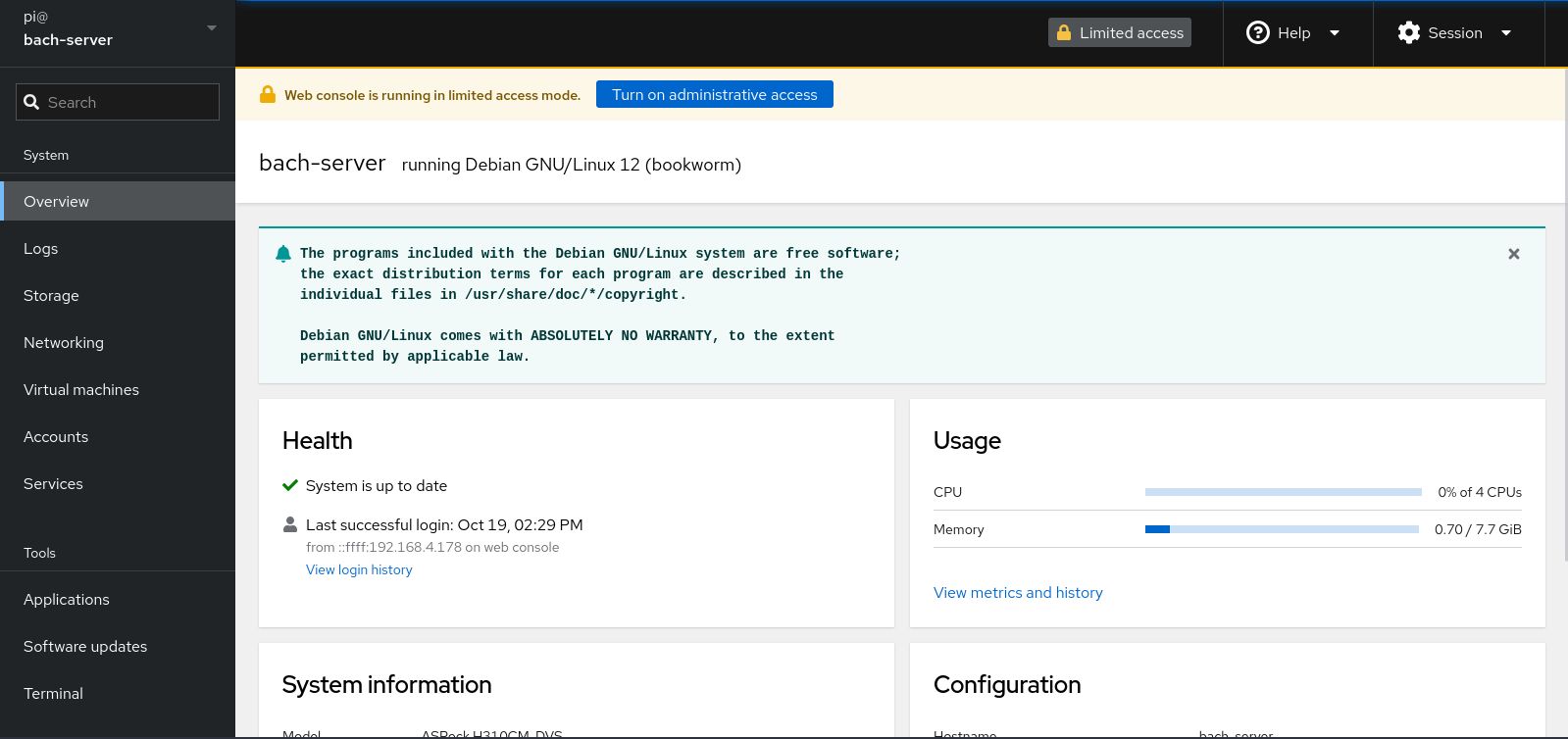 I always want to have a virtualization lab in my home. But I don't want my server to fully commit to that idea. Even though Proxmox seems like a decent OS for the job, I still pick Debian for more customization. It's more general-purpose compared to dedicated OS. There's only one package that can help me realize the dream, Cockpit.